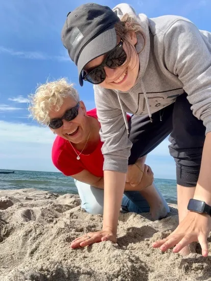 There are two of us living in our cozy house in Berlin. I work as a photographer and coach. Maja is studying industrial engineering. We like to eat together and go to the bouldering hall or the cinema.