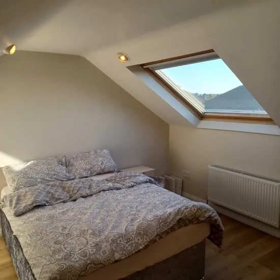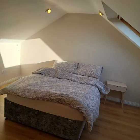 It is a semi detached house in quiet sub urban area. Big front and back garden with a small gym area in shed. House is occupied by two people male and female along with a friendly dog. Close to a bus route that goes directly to city centre.