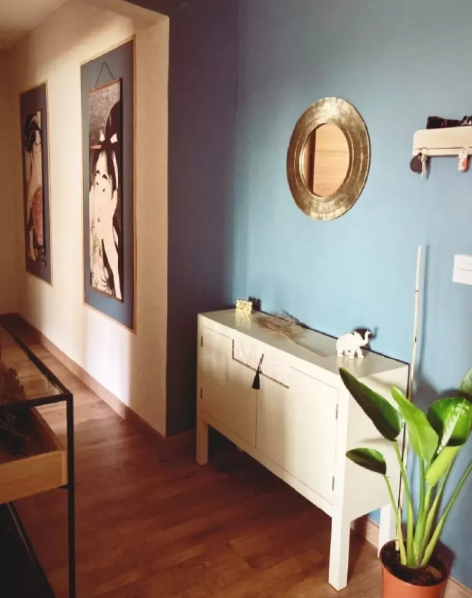 We live in a three-bedroom apartment, we live with 2 dogs and a cat.