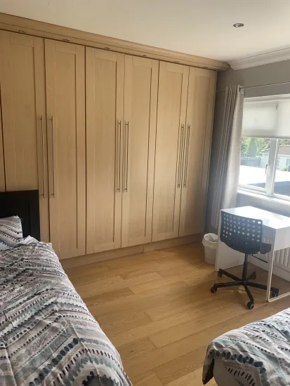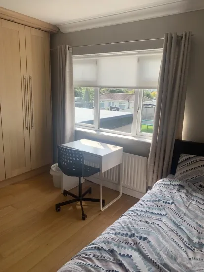 The house has a front and back garden. Bedroom is very spacious and has WiFi.