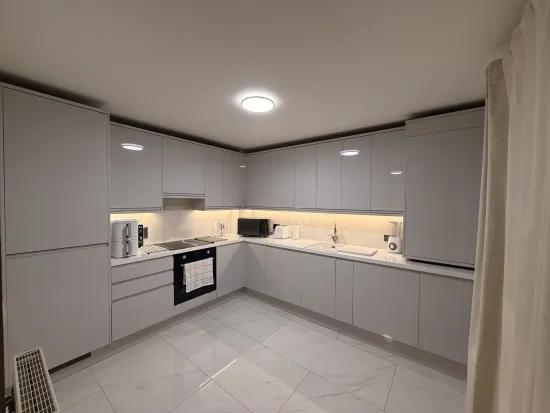 We live in an apartment in a quiet area. In our free time, we enjoy hiking, cooking, and watching movies together. We also love going for walks with Bruno and spending time outdoors.