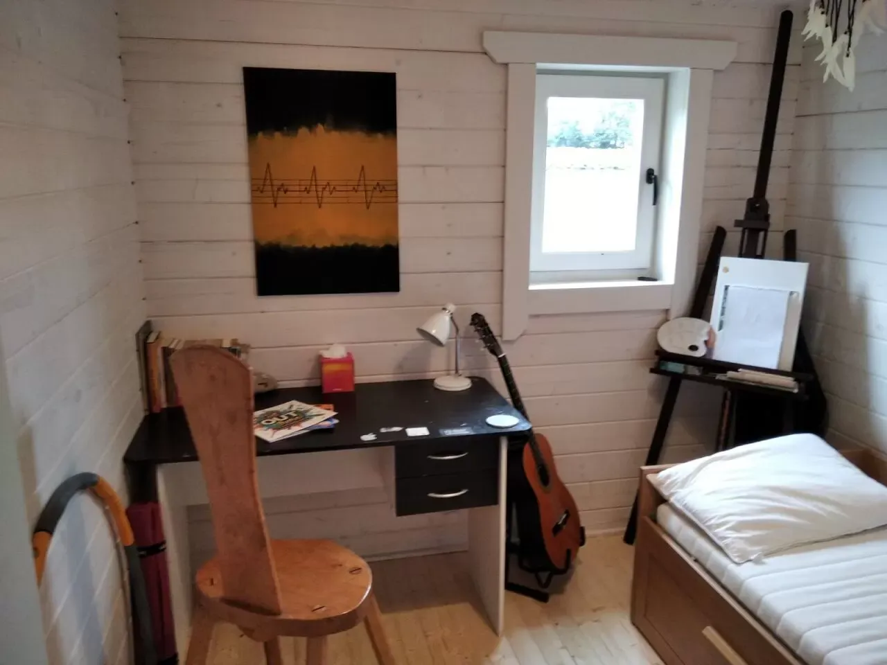 We live in a cosy three bedroom wooden bungalow in the Irish countryside surrounded by farmland and trees (and not far from the beach). The main living area is bright, spacious and warm - perfect for enjoying meals together or playing a board game! We have one bathroom with a large rain shower and a bathtub. Our guest will have a small but bright single bedroom equipped with a desk, art supplies (including an easel), a guitar and a yoga mat. We have been hosting international travellers for a year now and enjoy having guests staying in our home. We are a fun loving family of 3, Ishtar (they/them), Marty (he/him) and Móg (he/him), living in our newly built wooden home in the rural south east of Ireland. Ishtar is 32 years old and is a yoga teacher. They are passionate about offering inclusive classes for all bodies. They spent several years travelling in Europe and Asia and are now looking forward to offering their home as a host. Marty is 27 years old and has a love of music, cinema and cooking. He enjoys listening to music, exploring new recipes and discovering great movies. He is studying for a degree in computer science. Móg was born in May 2022 and spends most of his time eating, chatting in nonsense words and reading books. He's very sociable and enjoys meeting new people and offering them a toothy smile! We are a friendly and welcoming family who love the outdoors, playing board games and going for sea swims! We eat lots of local, fresh vegetables, fruits and eggs from the neighbouring farm and Ishtar eats mainly vegetarian so accommodating vegetarians and vegans is not a problem. National Heritage Park in Wexford. Cliff walk and/or swim at Cahore beach. Glendalough National Park. Avondale Treetop Walk. Visit Wexford or Kilkenny town