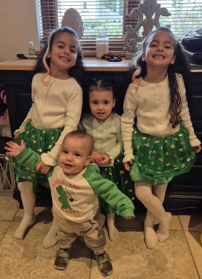 She has 6 kids and 2 dogs and 2 fish. She is a stay at home mom and her partner works. Her kids ages are 11 months, 3 years , twin 5 year olds, 17 and 20.