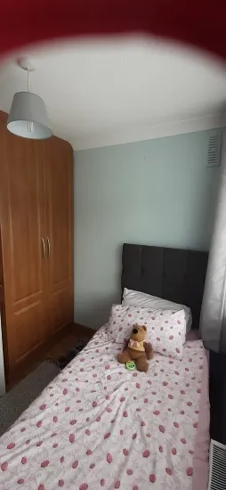 We live in Tallaght, Dublin 24. The room available is a box room with ample storage. We have bus routes in 49, 65B which are two minutes walk away, which connects our home to Dublin City Centre and S8 connecting to Dundrum Town Centre. The Luas Red line is 15minute walk from our home to the Square Tallaght to City Centre. A number of local shops all within 5 minutes of our home. Myself and my husband are retired. We welcome you to our home.